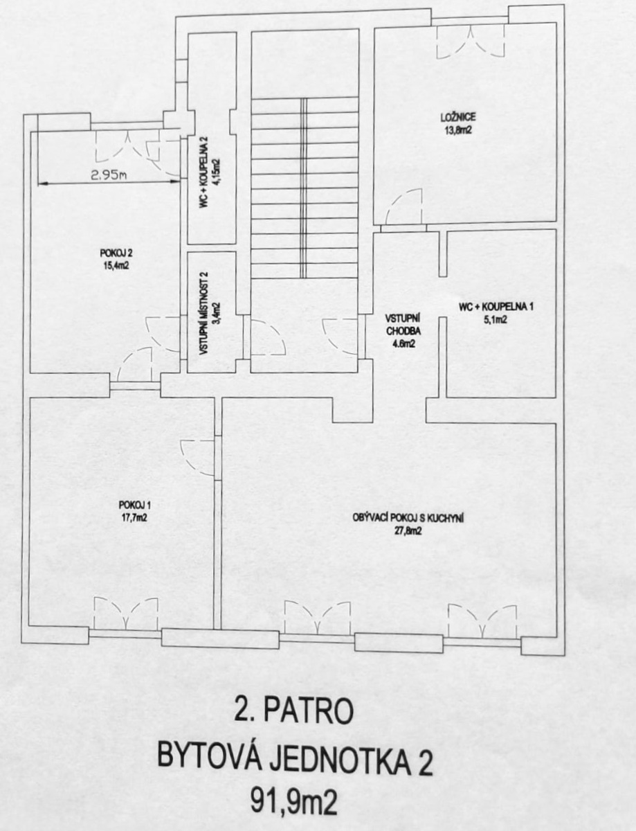 Do bytu se nechá vstoupit ze dvou stran ze společné chodby (schodiště).