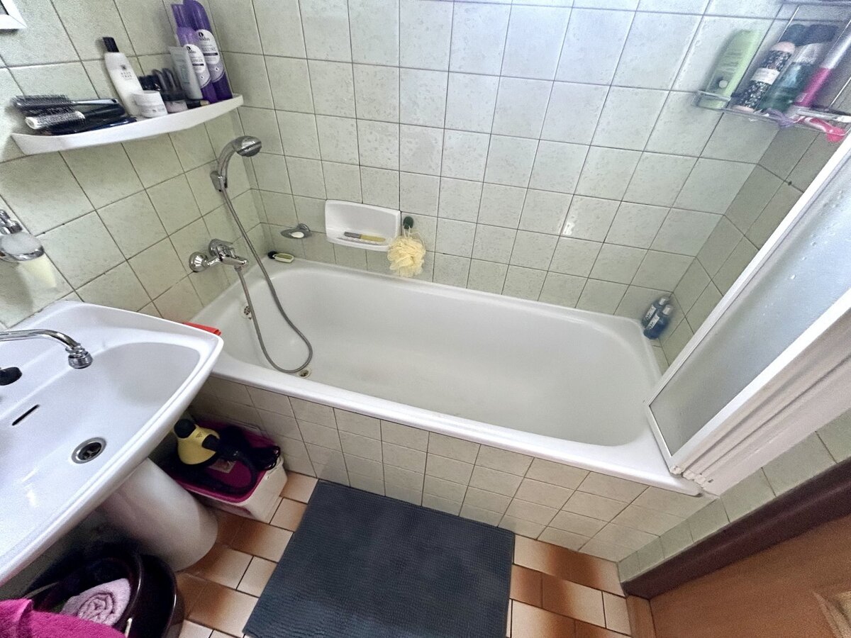 Při vstupu z chodby zleva: vstupní chodba, ložnice, koupelna s vanou,